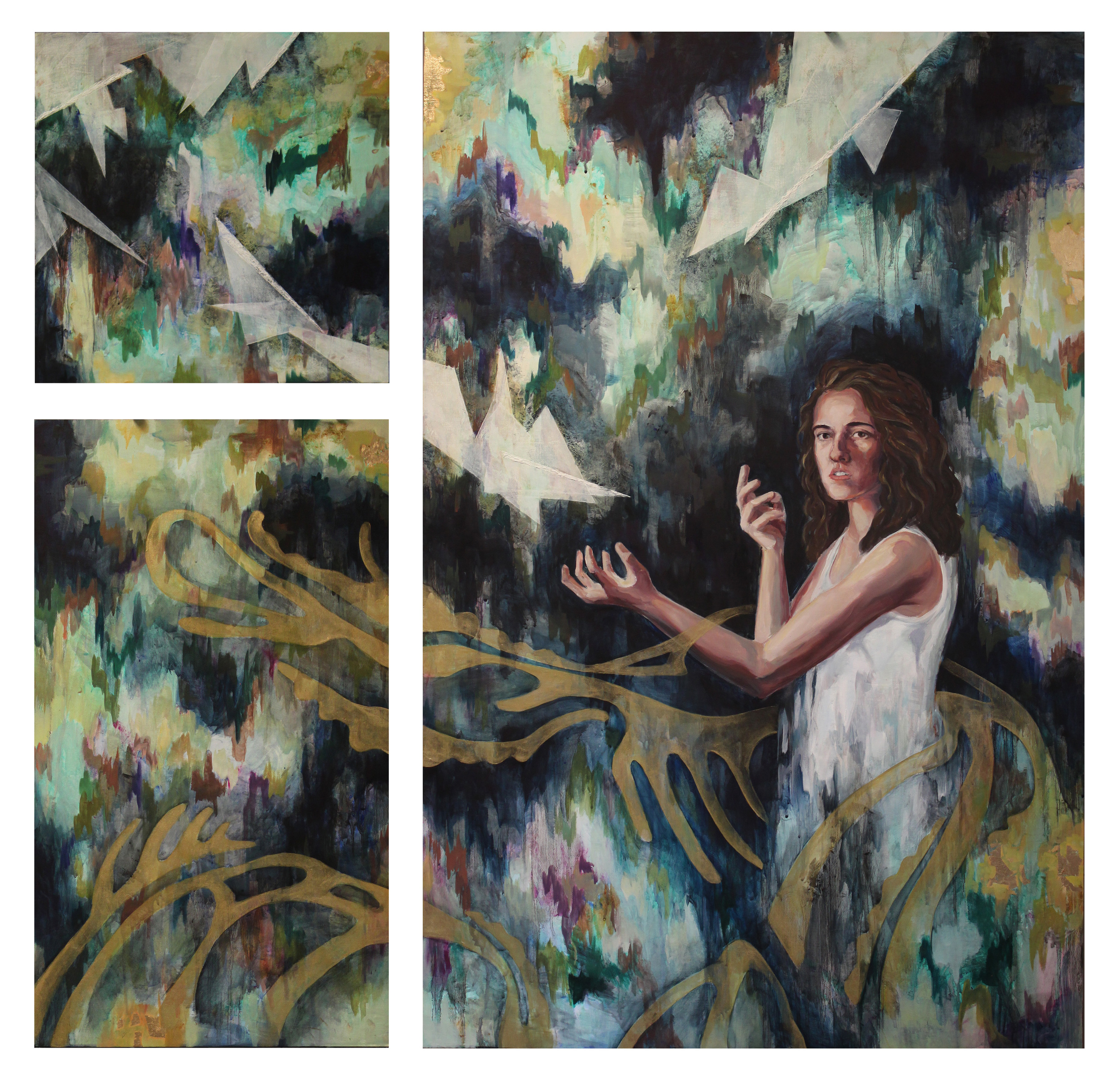 The Absence of Form and the Presence of Absence. (Pt 1 and 2) Oil and Gold Leaf on Panel. 22” x 46”. 2014